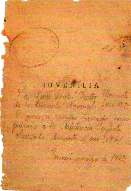 La Asociación Cooperadora "Victor Mercante de la Escuela Normal José María Torres" a Carlos Lavado, como premio a la Asistencia perfecta observada durante el año 1961